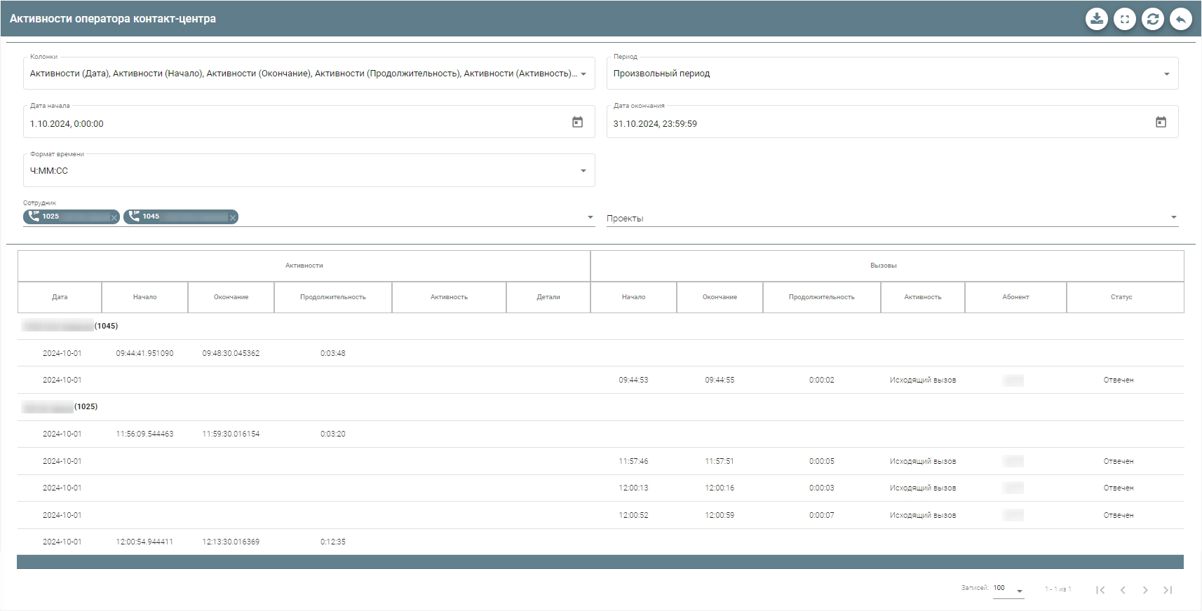 Отчет по активностям операторов контакт-центра