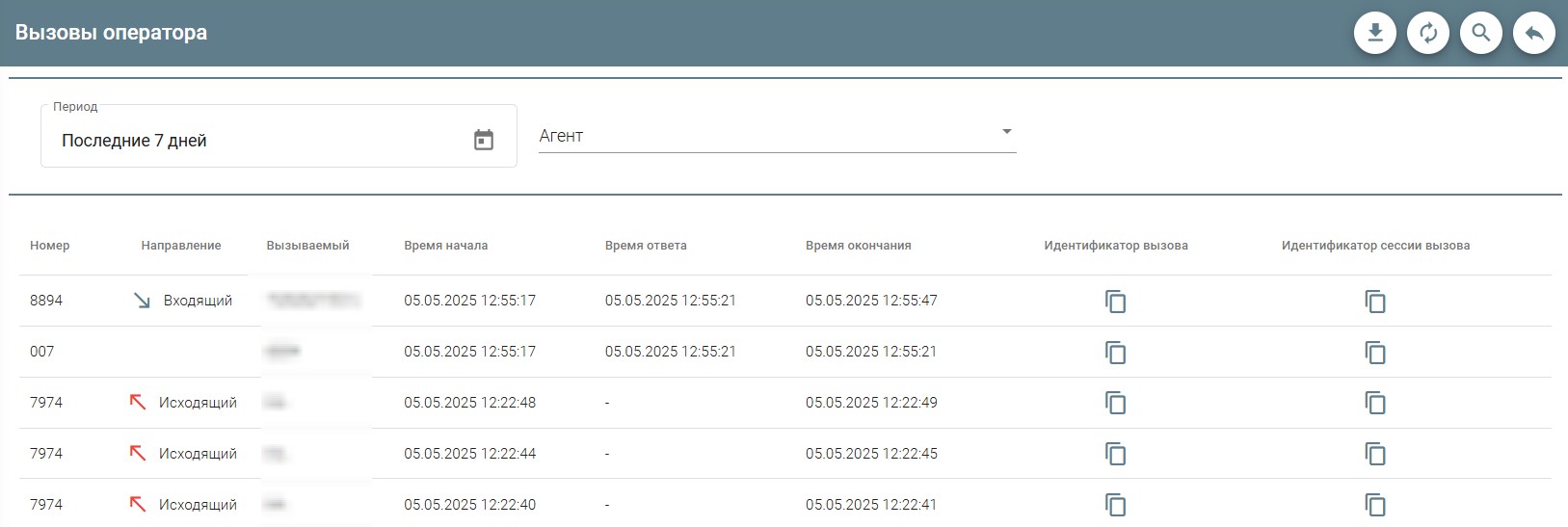 Данный журнал показывает все вызовы, связанные с оператором.