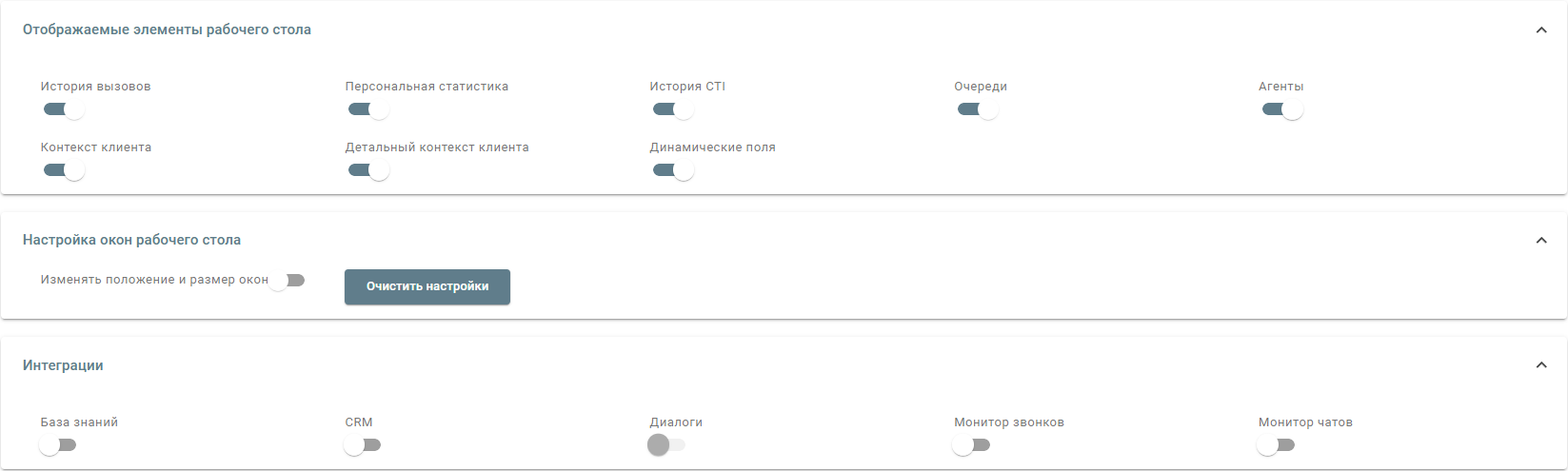 Данный раздел предоставляет возможность вынести главные параметры управления АТС и интеграцией в одно меню. Раздел создается и наполняется элементами, согласно техническому заданию клиента. Разработка сугубо индивидуальная, а стоимость зависит от технического задания.
